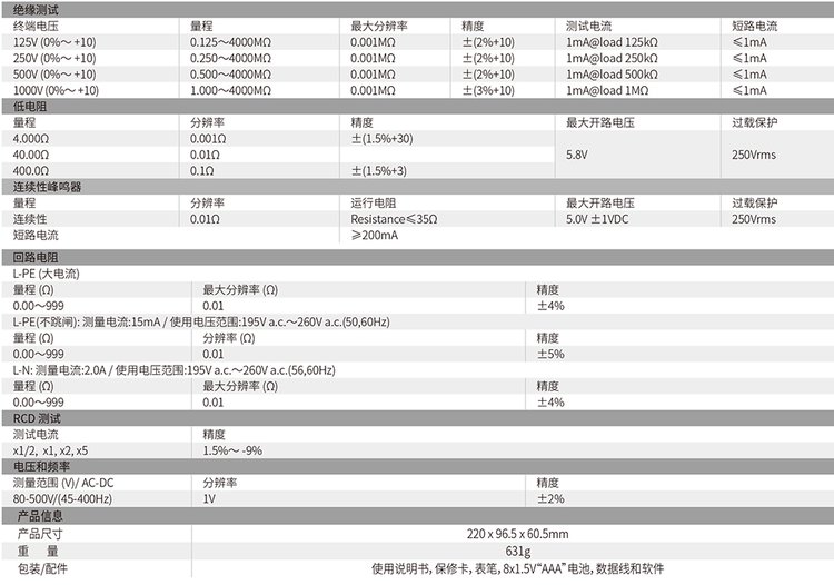 PLUSFO多功能電氣綜合測(cè)試儀, 3.5"高清彩色TFT液晶顯示屏,雙注塑機(jī)殼,可測(cè)絕緣電阻、接地電阻、低電阻、回路電阻、電壓、RCD、PFG和PSC,并有配套軟件系統(tǒng),同時(shí)具有快速取樣、雙顯示、清晰的按鍵和大屏等優(yōu)點(diǎn),方便用戶(hù)簡(jiǎn)單清晰地操作,可以確保電氣裝置在家庭、商業(yè)、工業(yè)等領(lǐng)域應(yīng)用的安全性,以及固定接線(xiàn)安裝的安全性和準(zhǔn)確性,是電力電氣領(lǐng)域的專(zhuān)業(yè)電力檢驗(yàn)工具。