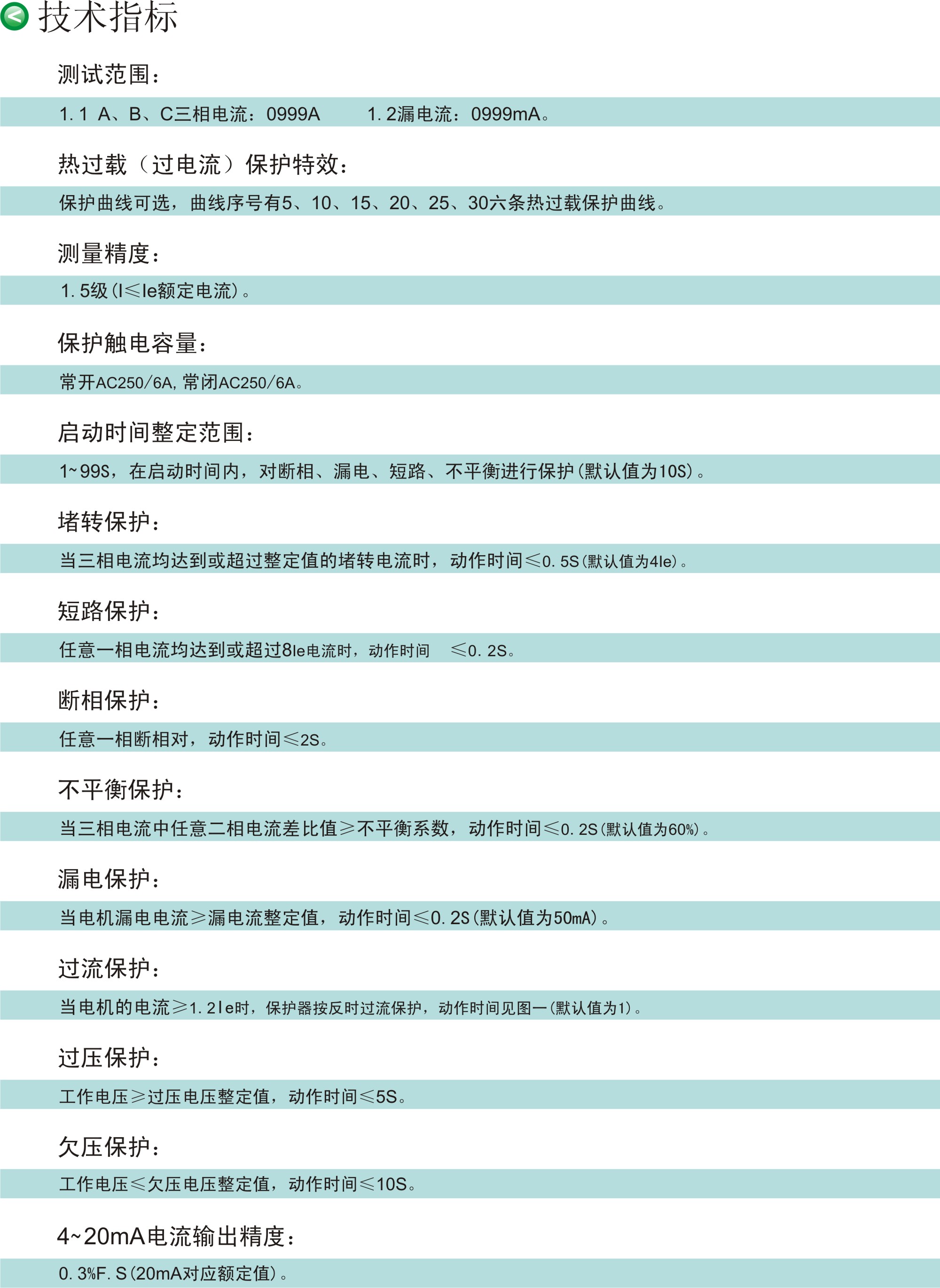 4.1 保護功能:過流、堵轉(zhuǎn)、三相電流不平衡、斷相、過壓、欠壓、漏電、短路等故障保護。