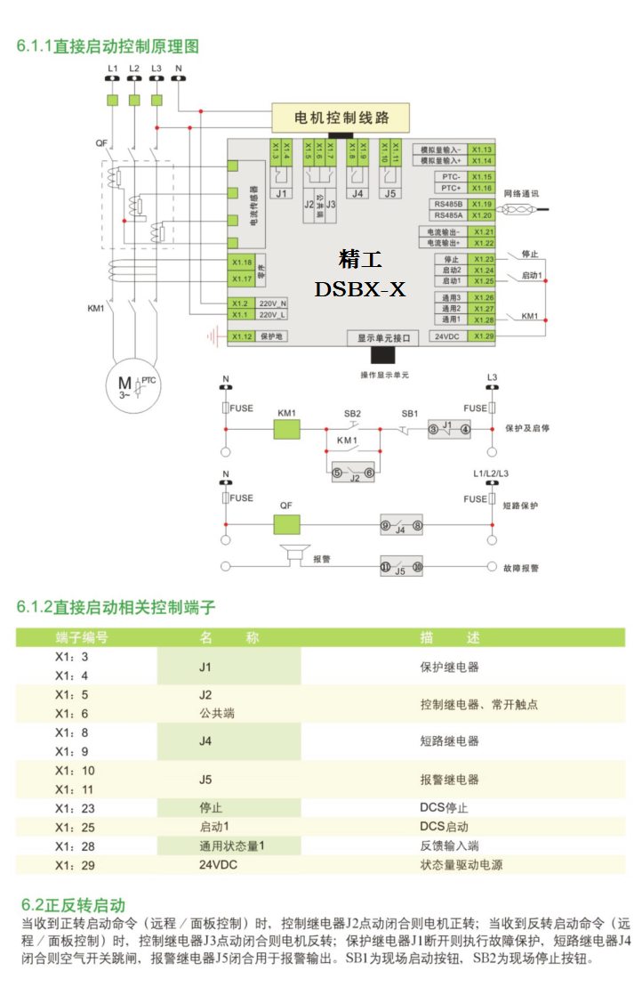 可對電動機實現(xiàn)直接啟動、直接-旁路啟動、正反啟動、正反-旁路啟動、星三角啟動、自藕降壓啟動方式。