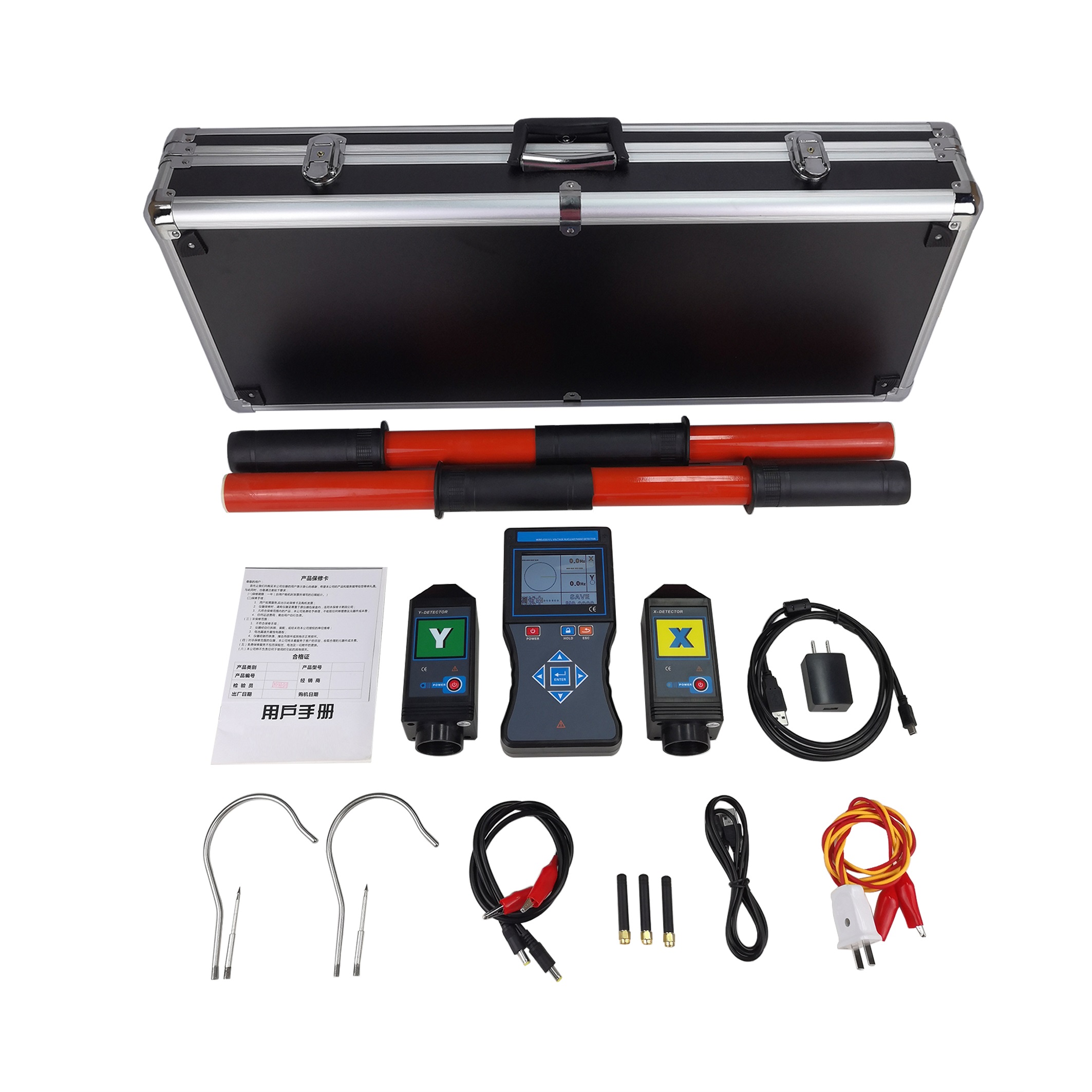 核相、電流、頻率、相位、驗電測試,核相電壓等級10V-550kV,核相距離160米,頻率45Hz-75Hz,3.5寸彩屏,向量圖指示,語音核相