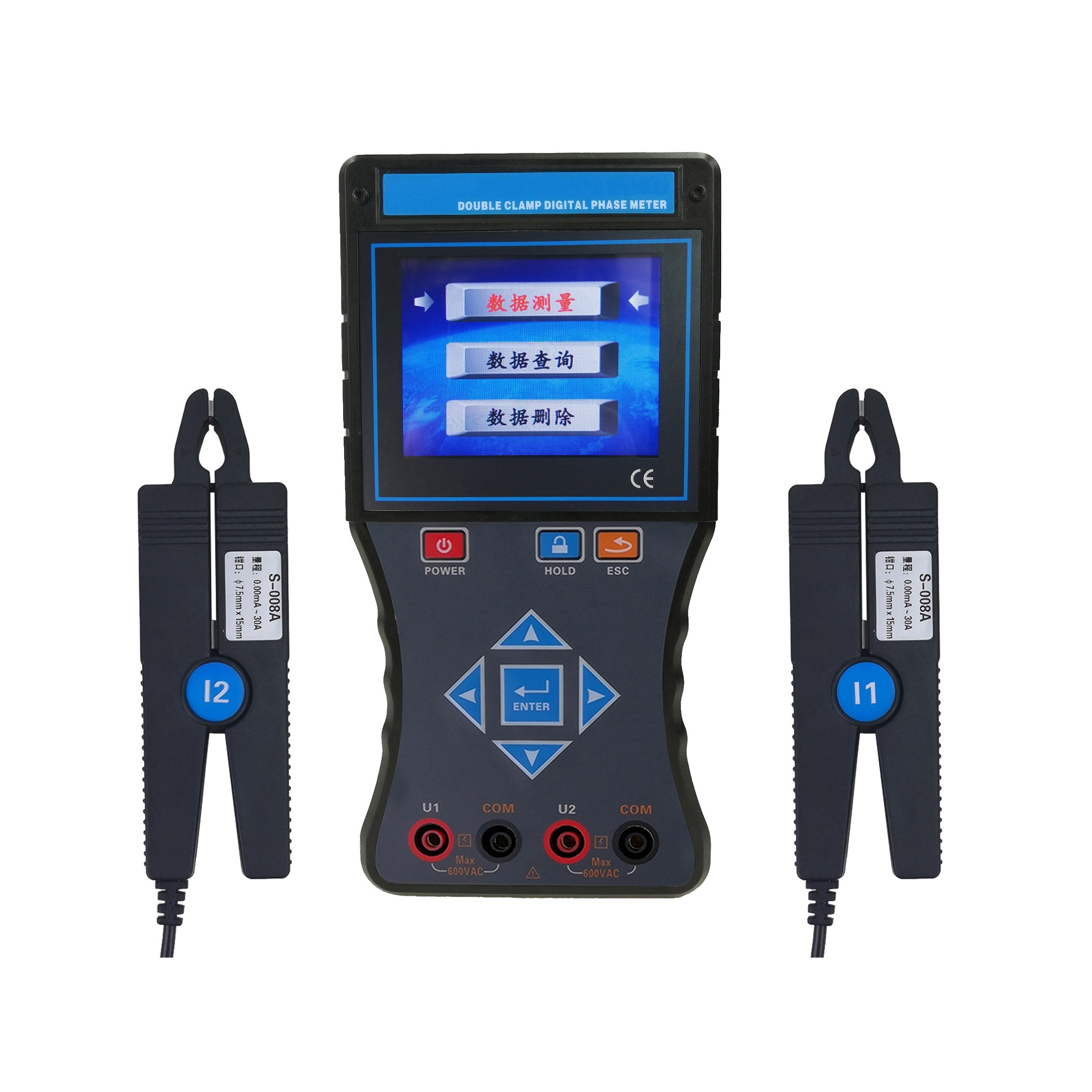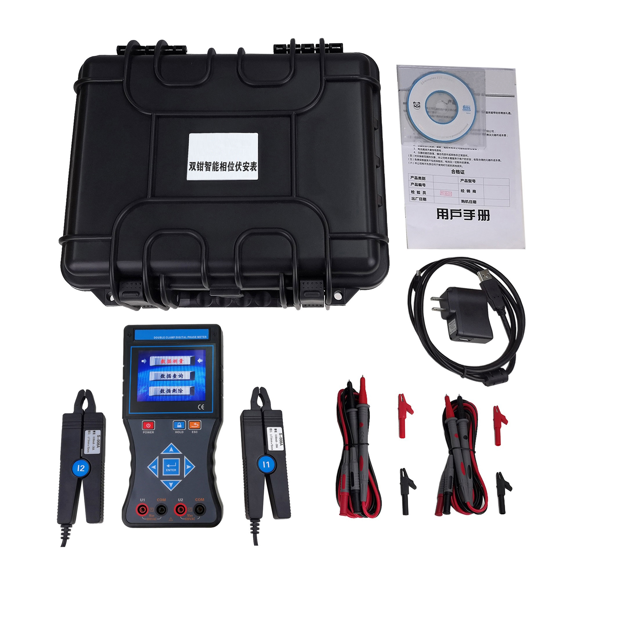 CA6220B 雙鉗智能相位伏安表是一款專為現(xiàn)場測試的多功能智能儀表,由主機(jī)、電流鉗(2把)、測試線(4條)等組成。主機(jī)采用3.5寸真彩液晶屏,圖形菜單界面顯示,所測參數(shù)同屏顯示,一目了然。電流鉗一體化手柄設(shè)計(jì),便于操作,非常適用于排線密集的場所。儀表可以在被測回路不開路的情況下,同時(shí)測量兩路交流電壓、電流、電壓間相位、電流間相位、電壓電流間相位、頻率、有功功率、無功功率、視在功率、功率因數(shù),相量圖顯示;判別變壓器接線組別、感性、容性電路,測試二次回路和母差保護(hù)系統(tǒng),讀出差動(dòng)保護(hù)各組CT之間的相位關(guān)系,檢