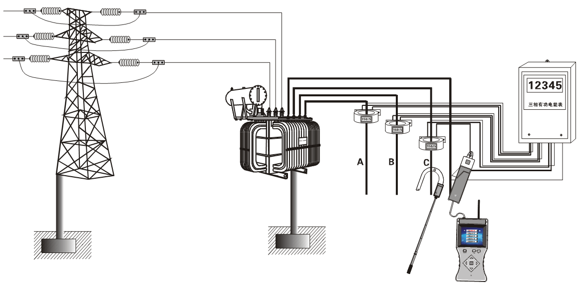 高低壓電流互感器一二次回路的電流、變比、極性、相別、比差、角差、漏電流在線測試;變壓器兩側(cè)電流大小、變比在線測試;負(fù)荷電流、大電流、漏電流測試