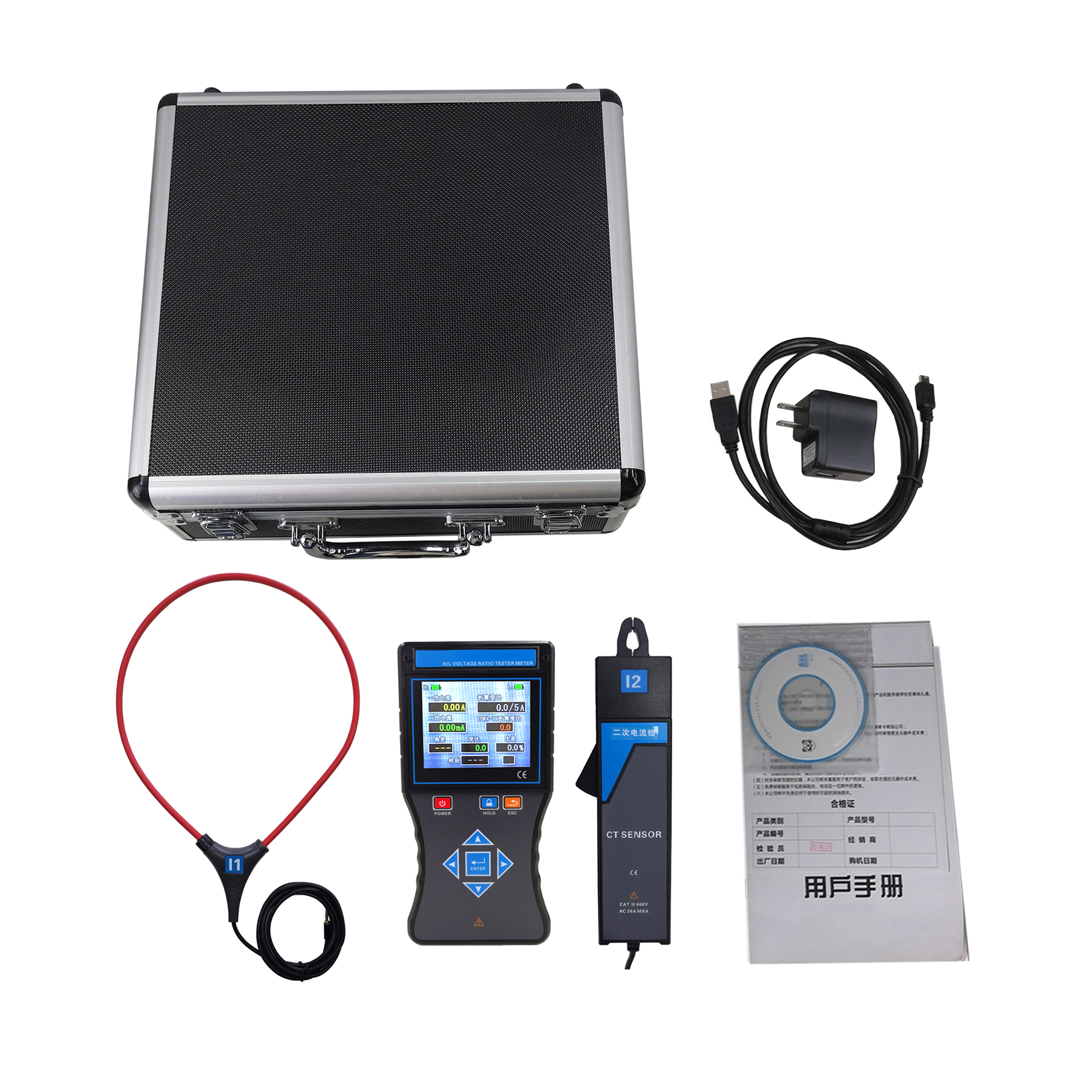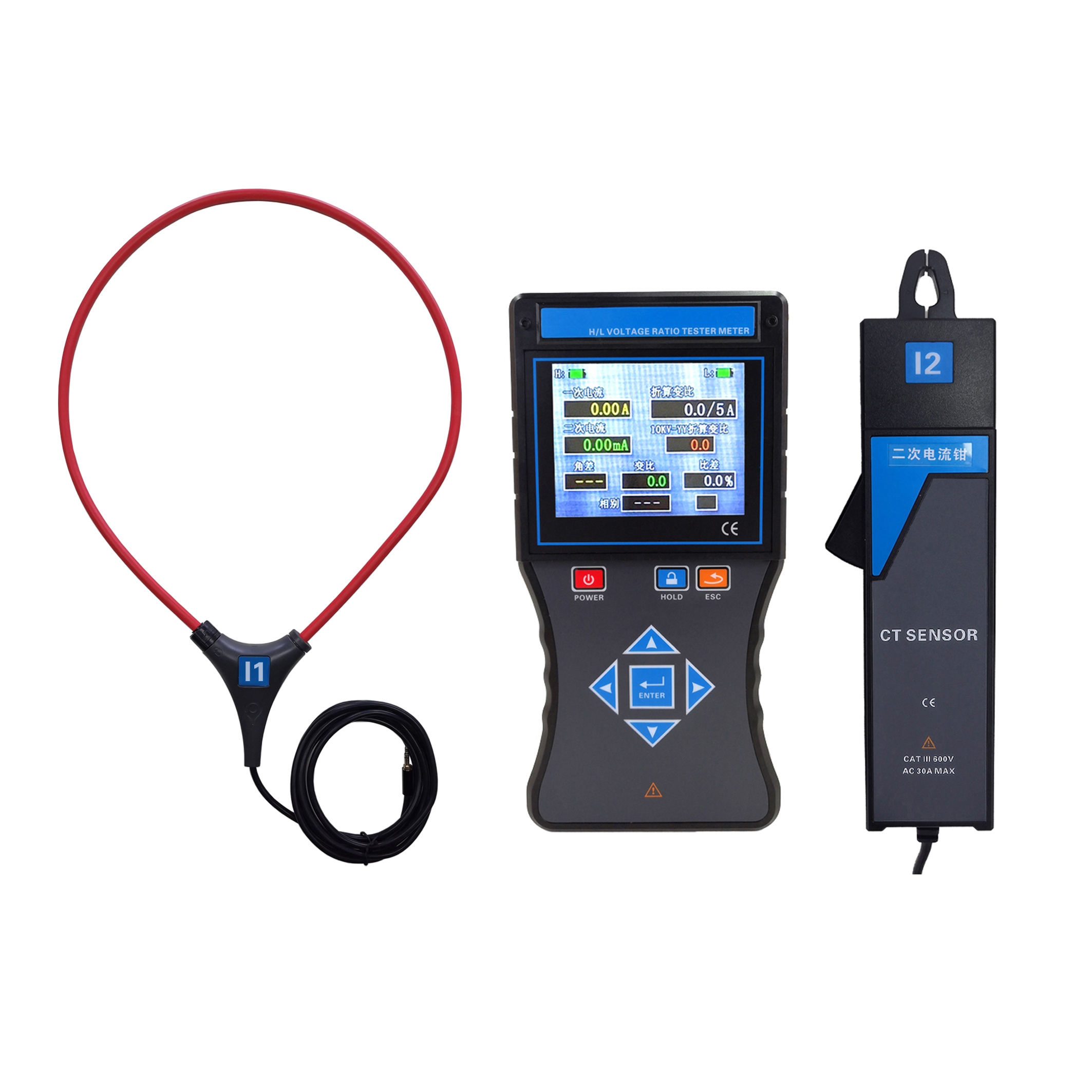 CA6380C低壓電流互感器變比測試儀突破傳統(tǒng)檢測方式,專為在線測量運行中的電流互感器、變壓器的初級、次級電流大小、變比、比差、角差、相別、極性、漏電流而精心設計制造的,由一次柔性電流鉗、主機、二次電流鉗等組成。