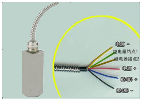 JG-930S-M振動傳感器采用抗振不銹鋼軟管引線結(jié)構(gòu),4芯(6芯)屏蔽電纜為傳感器提供電源和RS485通訊,信號的定義通過不同的電纜顏色來區(qū)別,下圖說明了傳感器信號定義。